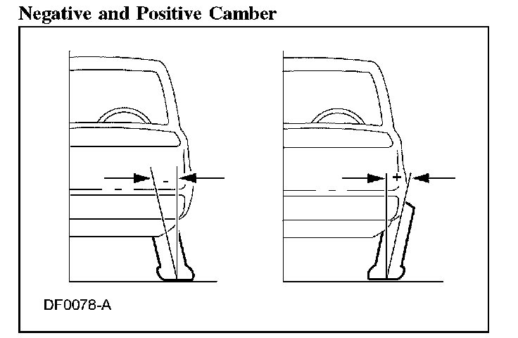 Camber is the vertical tilt of the wheel when viewed from the front. Camber can be positive or negative and has a direct effect on tire wear.