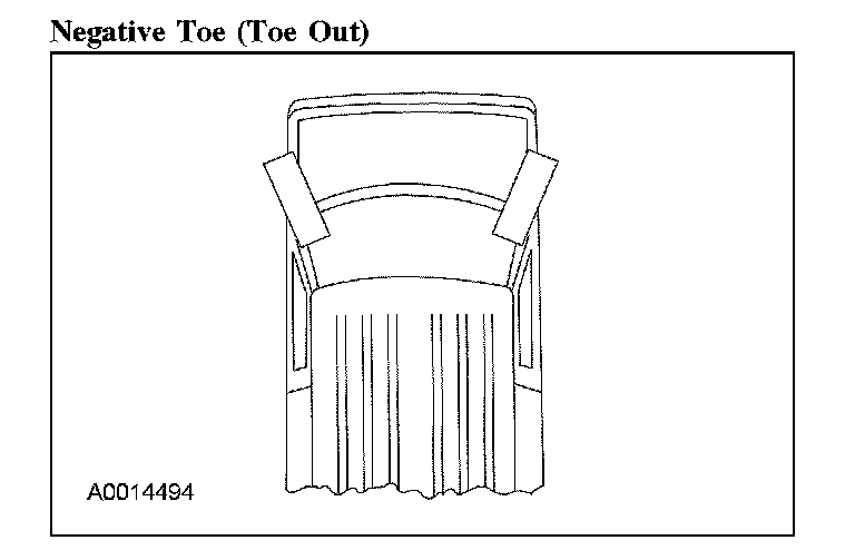 A backward tilt is positive (+) and a forward tilt is negative (-). Front caster adjustment is not a separate procedure on this vehicle. Front caster should fall within specification when the front camber is adjusted.