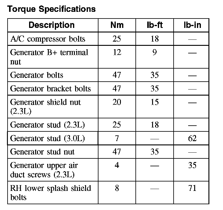 Torque Specifications:
