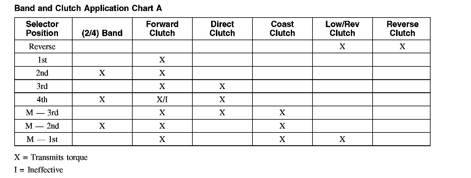 Band and Clutch Application Chart A