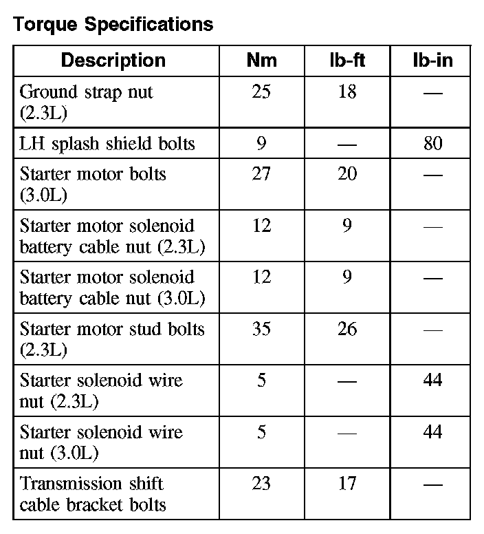 Torque Specifications: