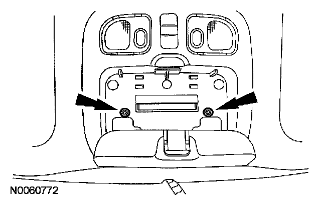 15. Position the overhead console and install the 2 overhead console screws.