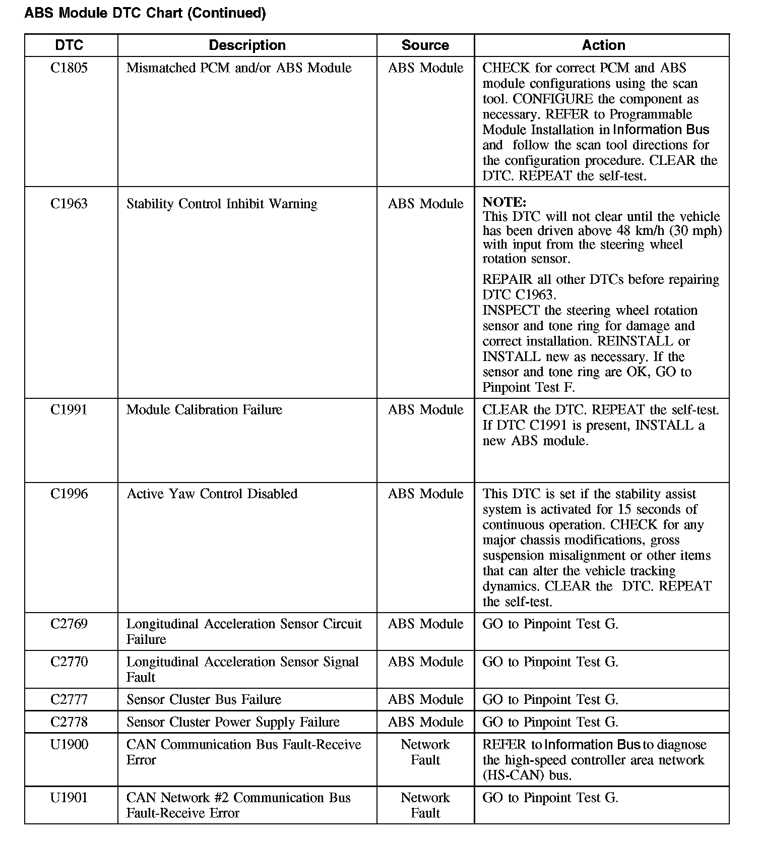 ABS Module DTC Chart