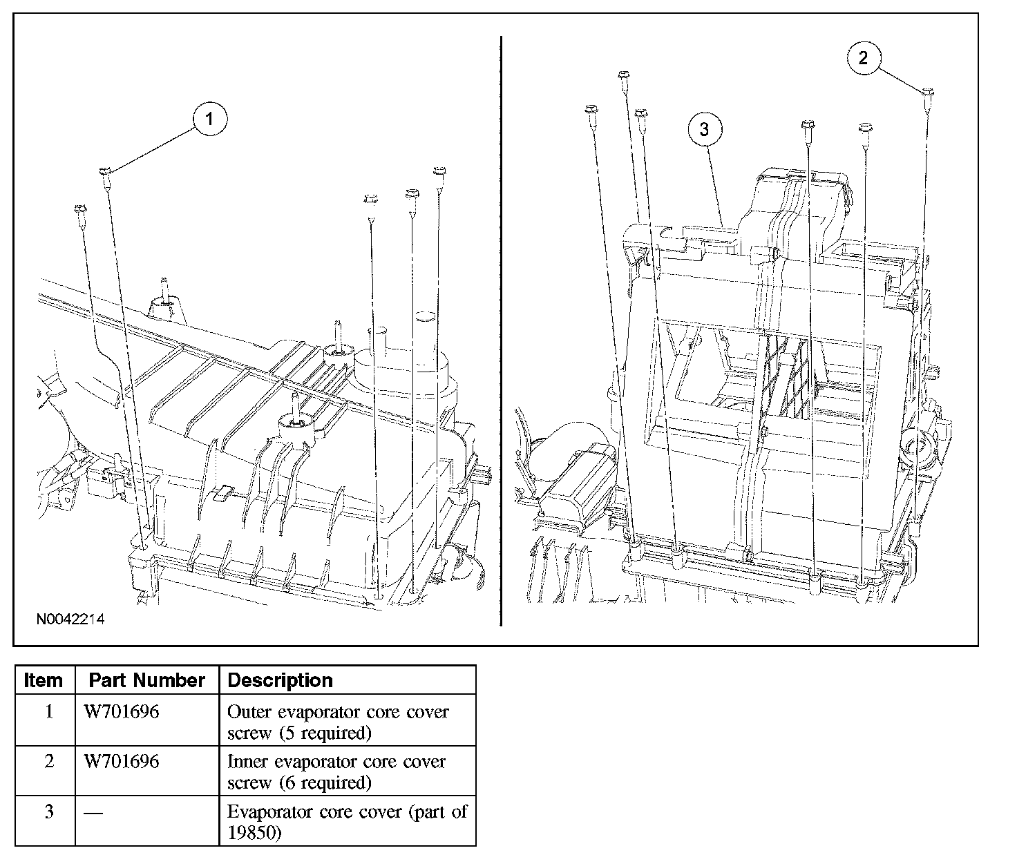 - Tighten the evaporator core cover screws in a diagonal pattern to distribute the RTV sealant evenly.