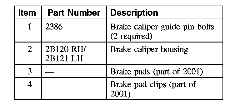 NOTE: One brake disc pad kit contains the pads and pad clips required for both sides.