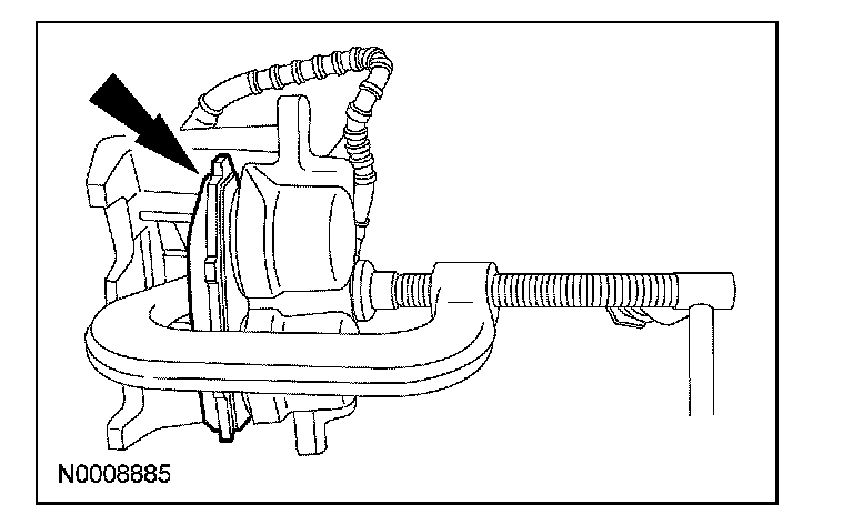 CAUTION: Do not allow the brake caliper to hang from the brake hose or damage to the hose can occur.