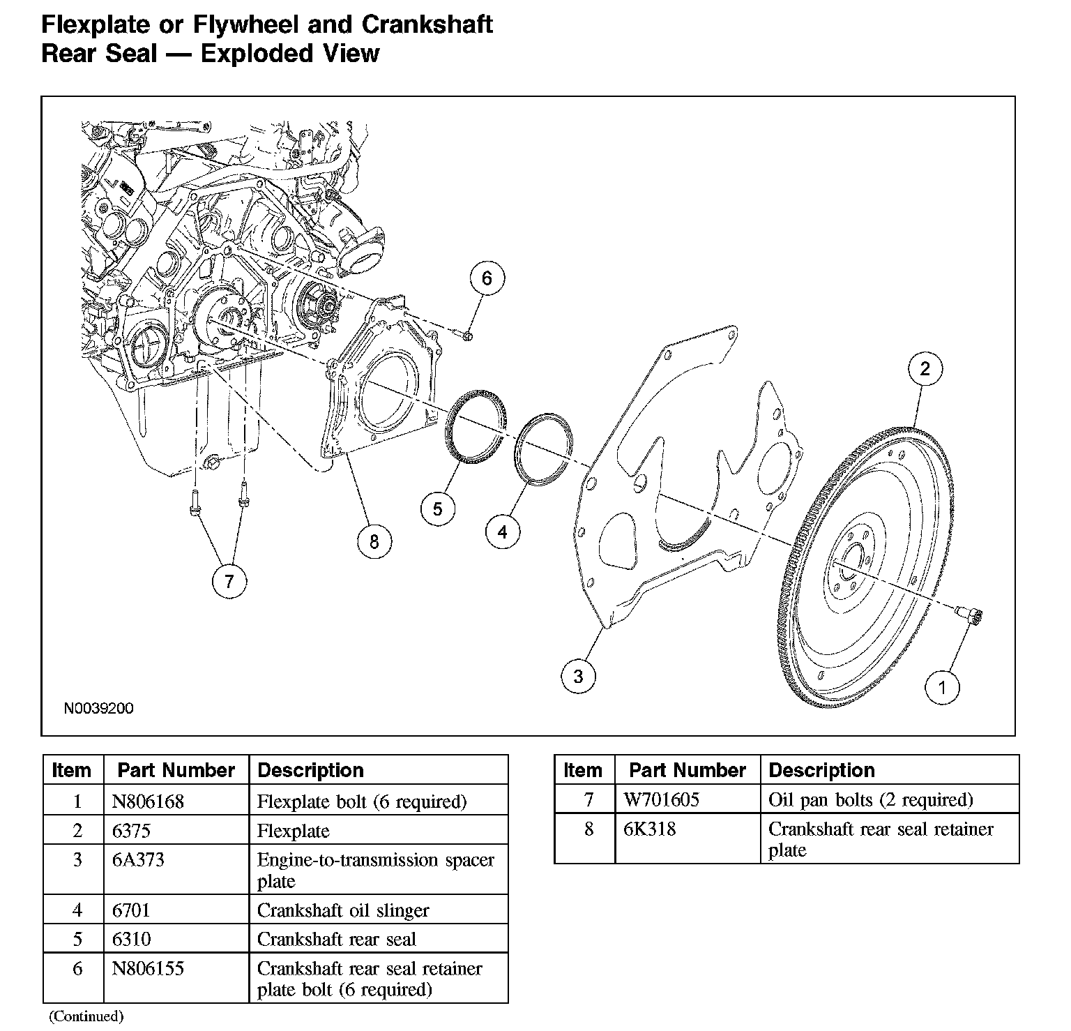 FlexplateFlexplate or Flywheel and Crankshaft Rear Seal - Exploded View: