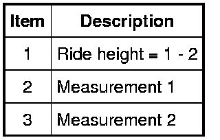 5. Subtract measurement 2 from measurement 1 to obtain the front ride height.