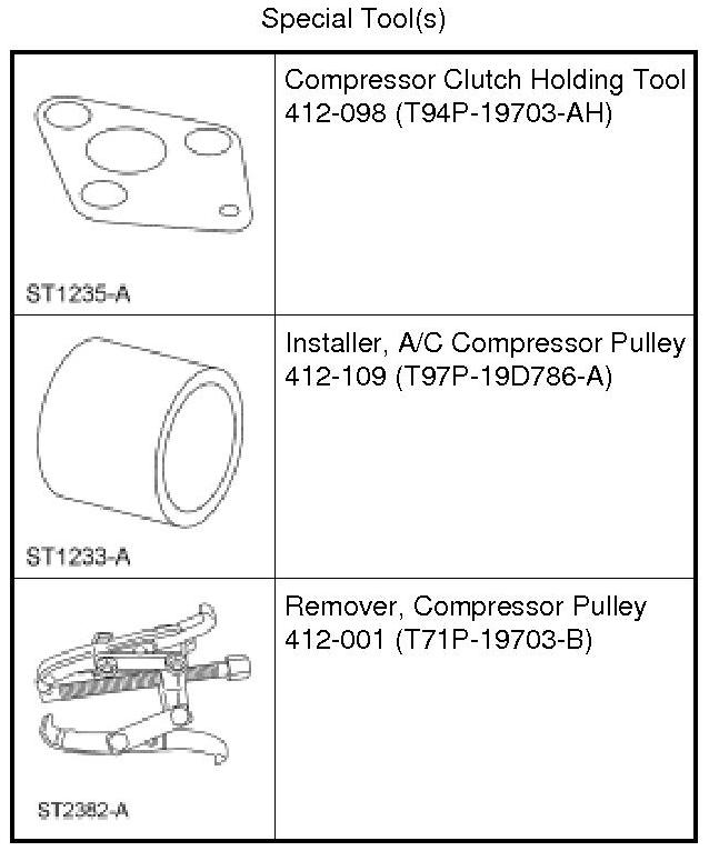 1. Hold the A/C clutch disc and hub with the Compressor Clutch Holding Tool.