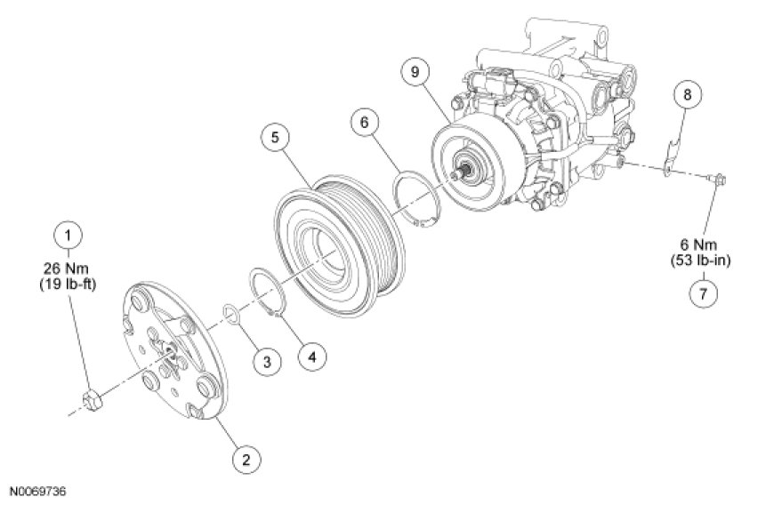 - Inspect for excessive wear, including grooving in the A/C clutch disc and hub or A/C compressor pulley that is more than fingernail depth.
