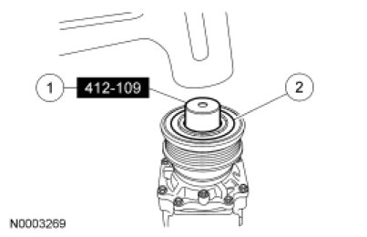 5. NOTE: The A/C compressor pulley is a tight fit on the A/C compressor. It must be correctly aligned during installation.