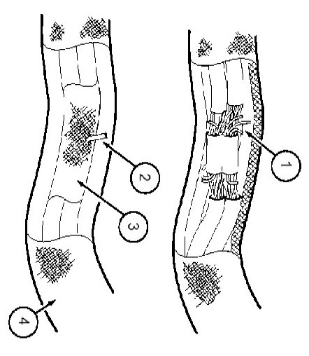 Remove the tape and flex/feel each circuit for a reduction in diameter at break.
