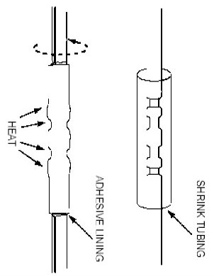 8. Use shielded heat gun to heat the repaired area until adhesive flows Out of both ends of heat shrink tubing.