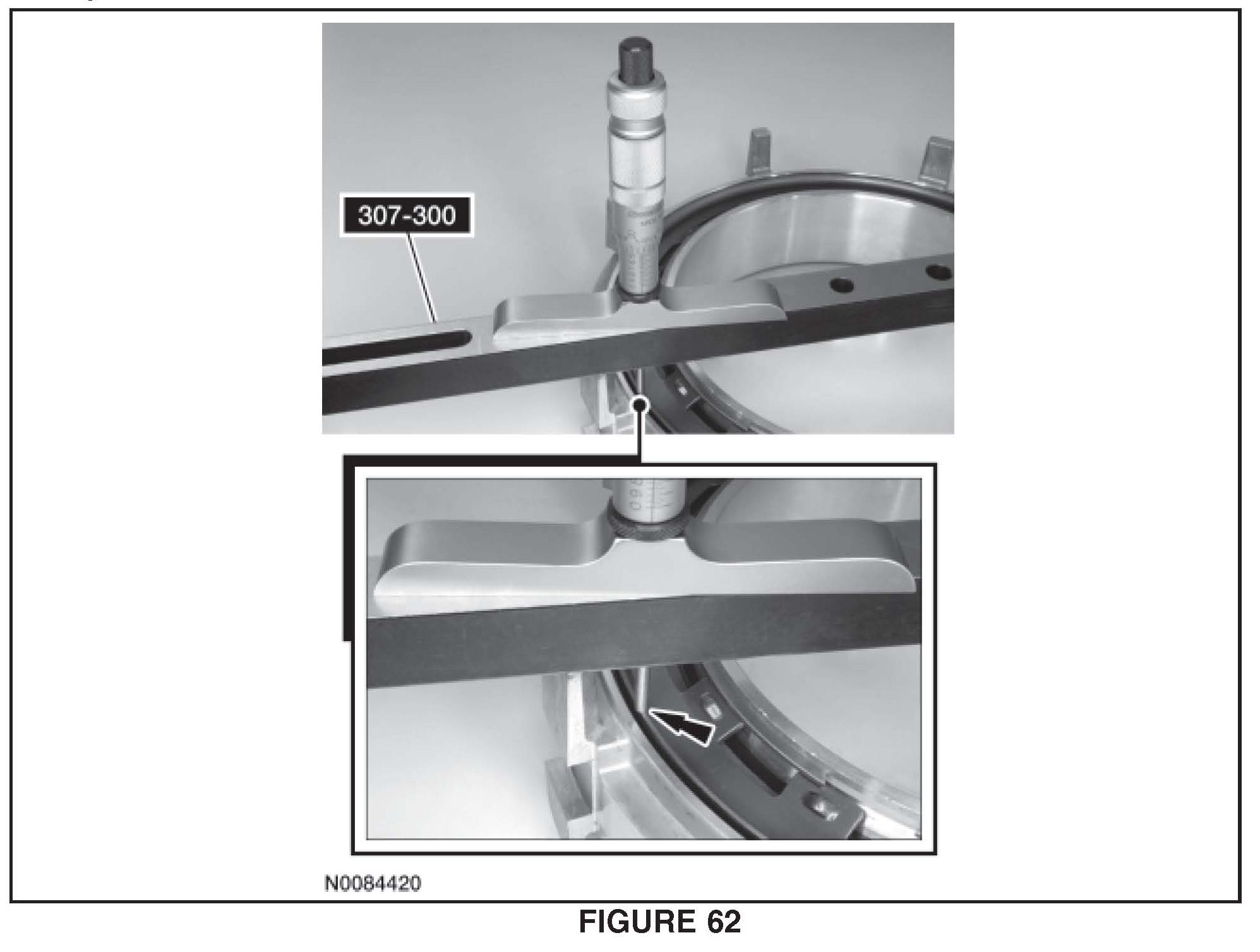 24. Using a suitable depth micrometer measure the distance from the Shim Selection Gauge # 307-300 to the top of the OWC Record this as measurement D. See Figure 64.