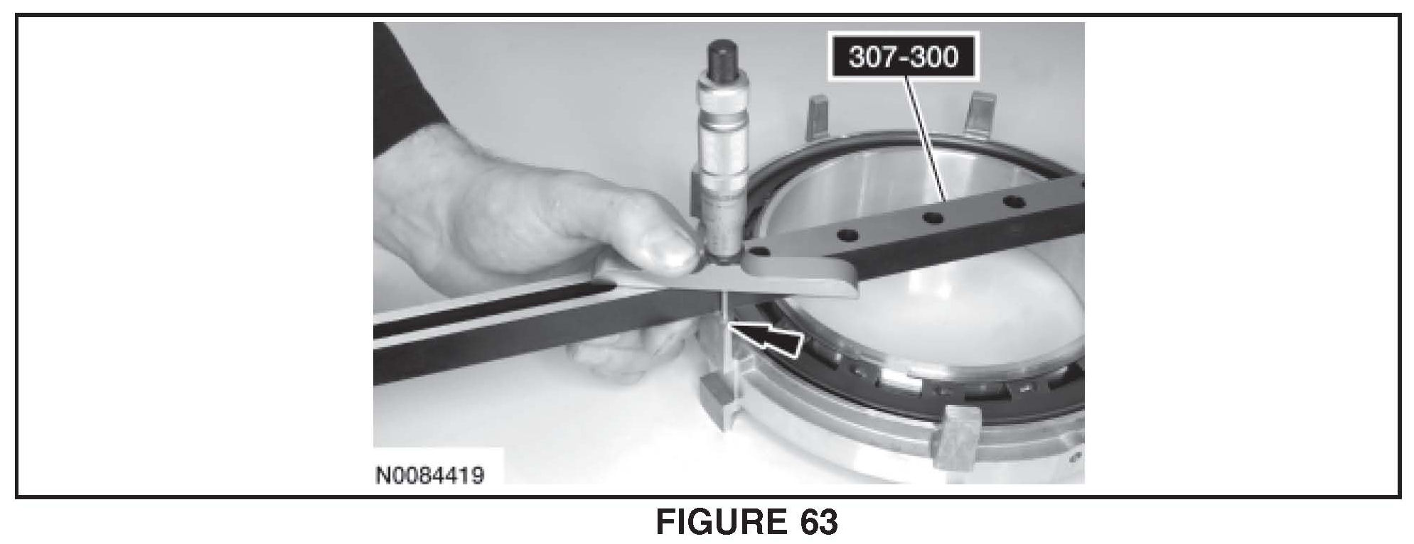 21. Using a suitable depth gauge, measure the distance from the top of Shim Selection Gauge # 307-300 to the leg surface of the center support Record this as measurement B. See Figure 63.