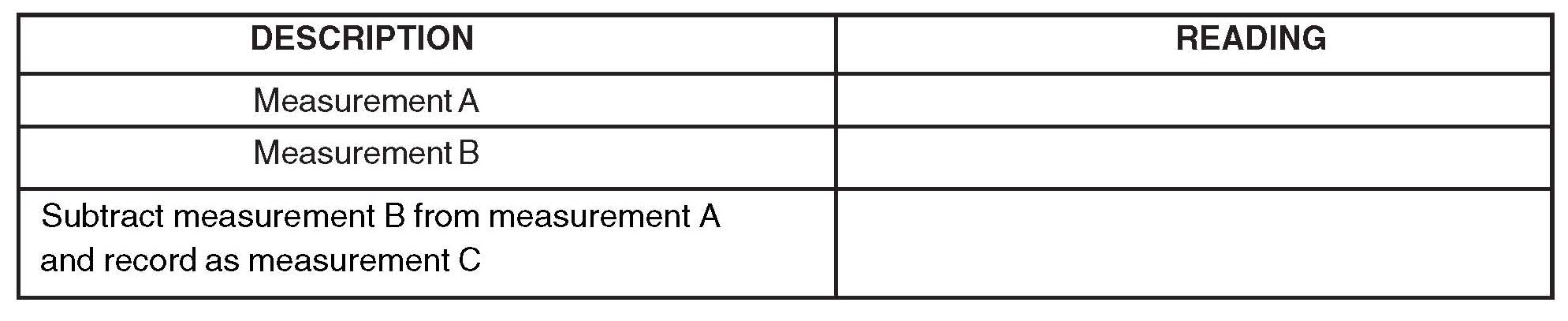 22. Subtract measurement B from measurement A and record as measurement C.