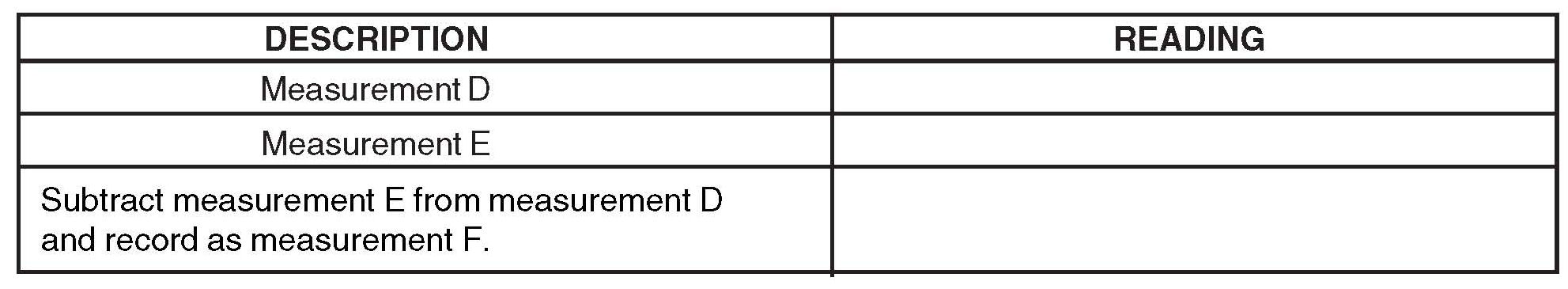 26. Subtract measurement E from measurement D and record as measurement F.