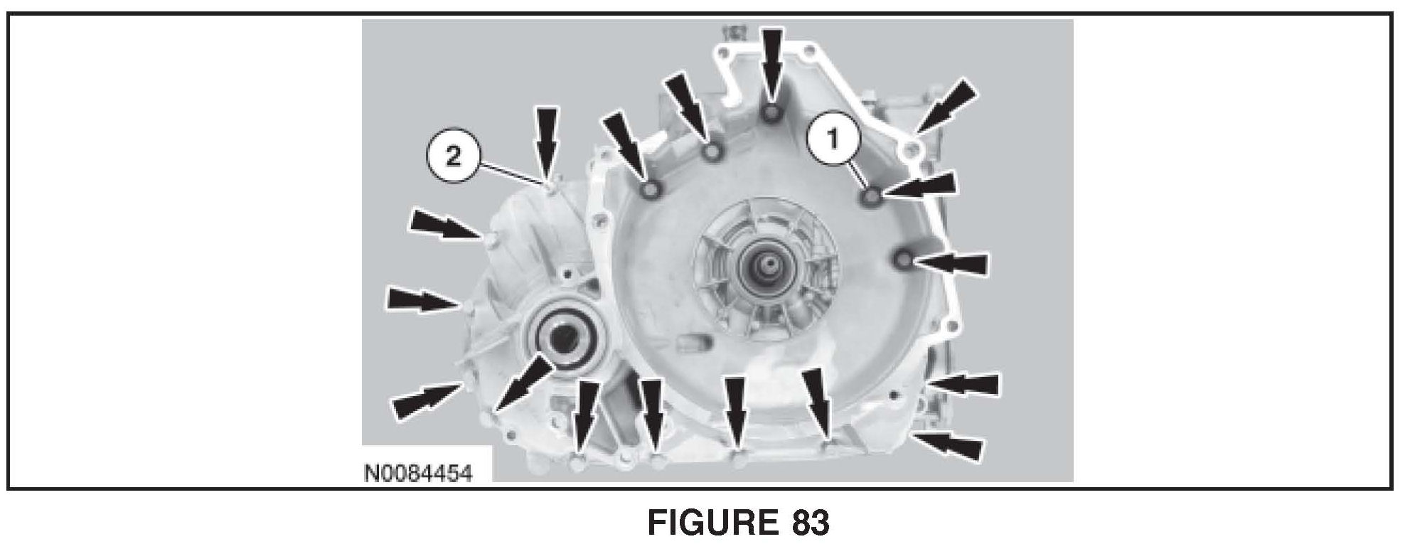 Install the torque converter housing on the transaxle case and install the 17 transaxle case-to-torque converter housing bolts. See Figure 83.