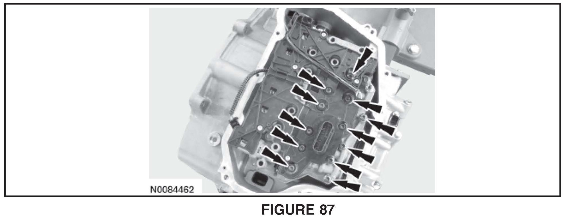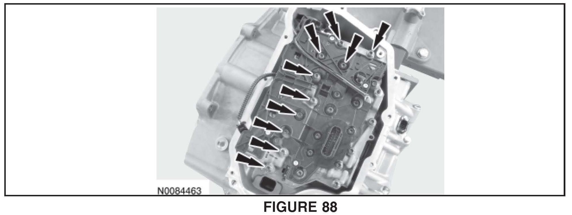 Position the main control assembly in place and align the manual valve on the TR sensor. Install the nut hand-tight. See Figure 86.