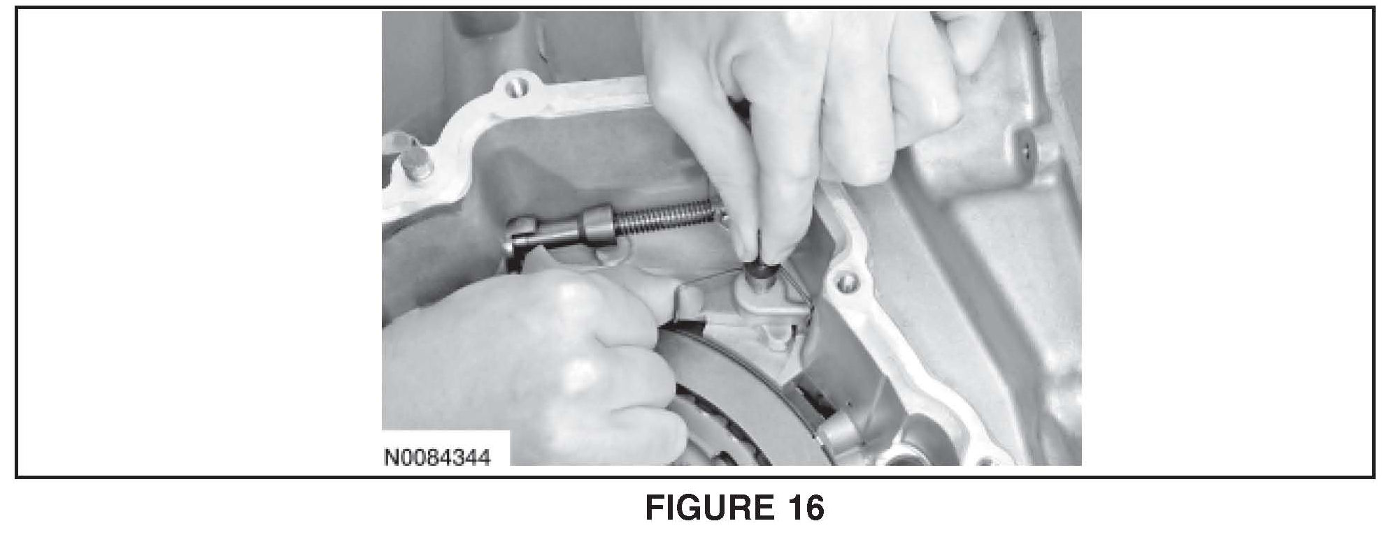 27. Remove the park pawl pin and spring. See Figure 16.