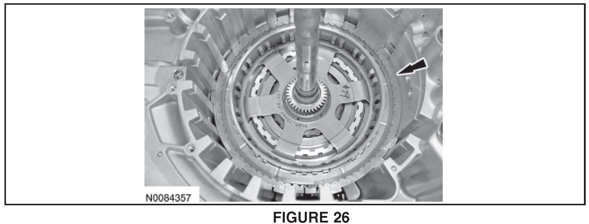 Remove the rear planetary sun gear and shell assembly and remove the intermediate (2, 6) clutch from the assembly. See Figure 27.