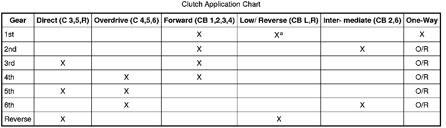 Clutch Application Chart:
