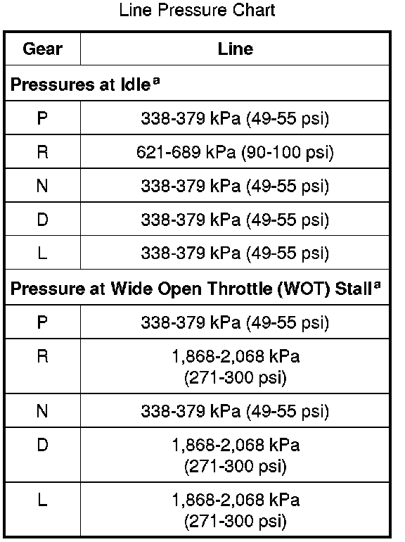 Line Pressure Chart: