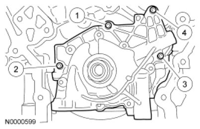 Position the oil pump and install the bolts.