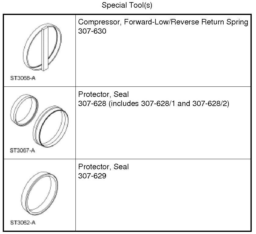 Install the Forward-Low/Reverse Return Spring Compressor 307-630 on the forward (1, 2, 3, 4) clutch return spring.