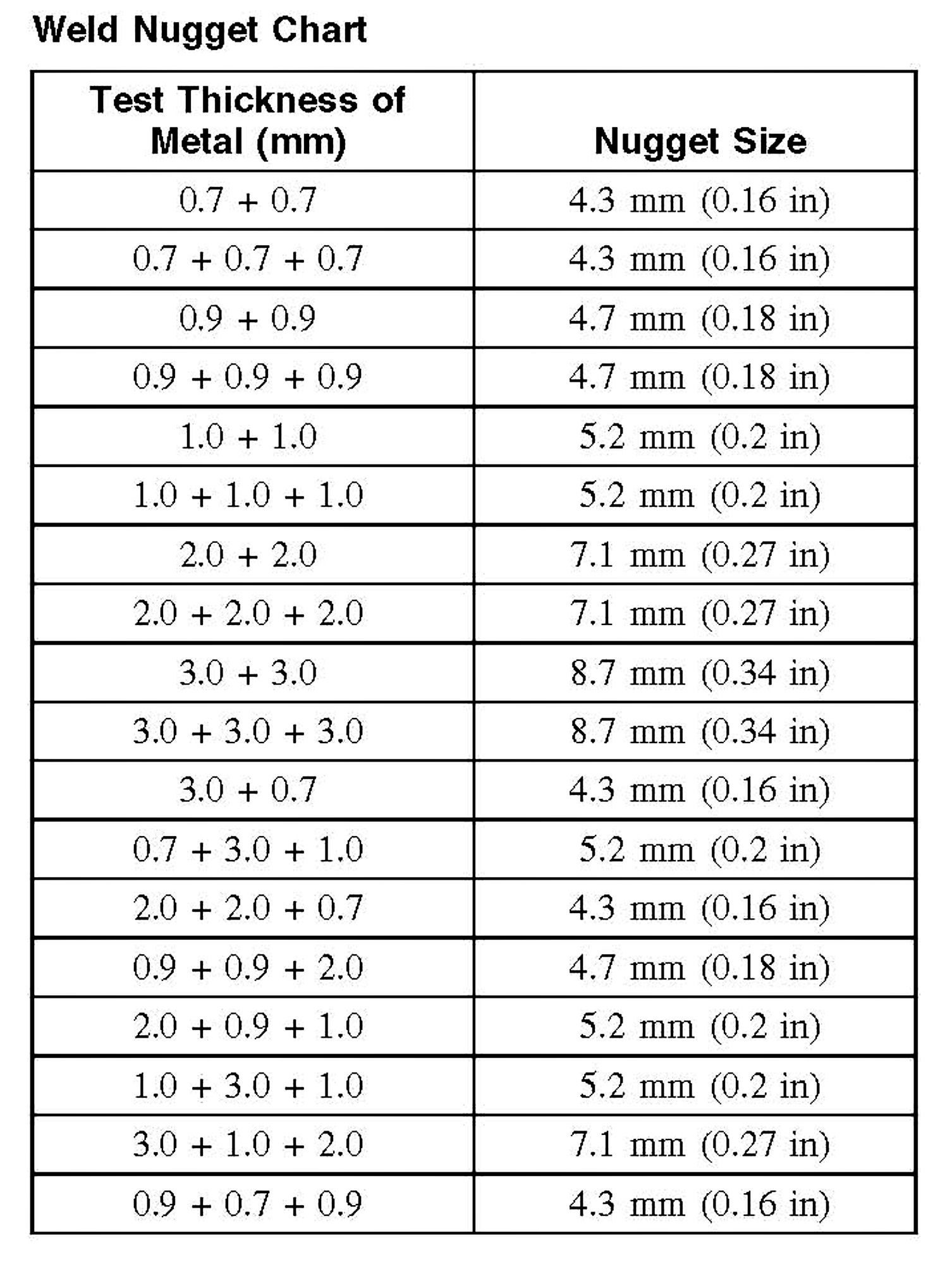 Weld Nugget Chart