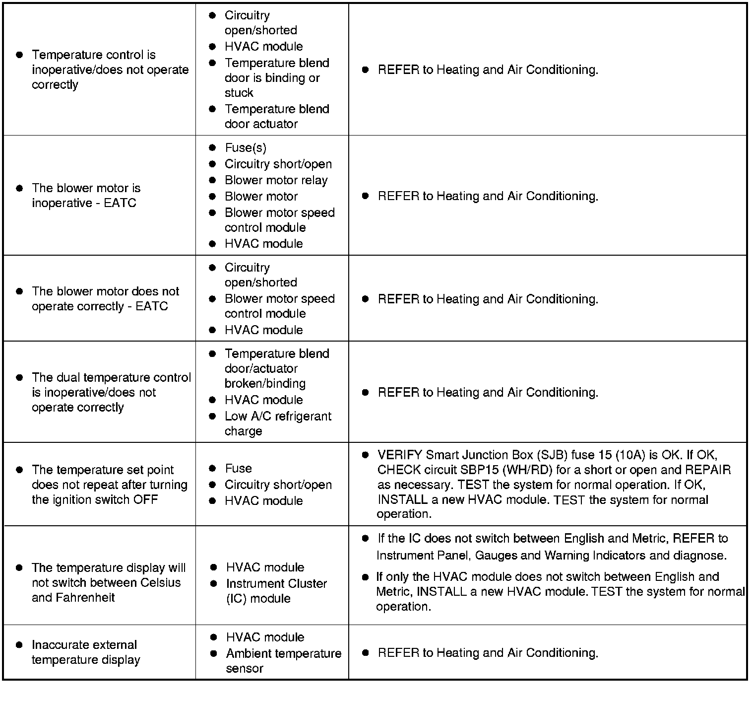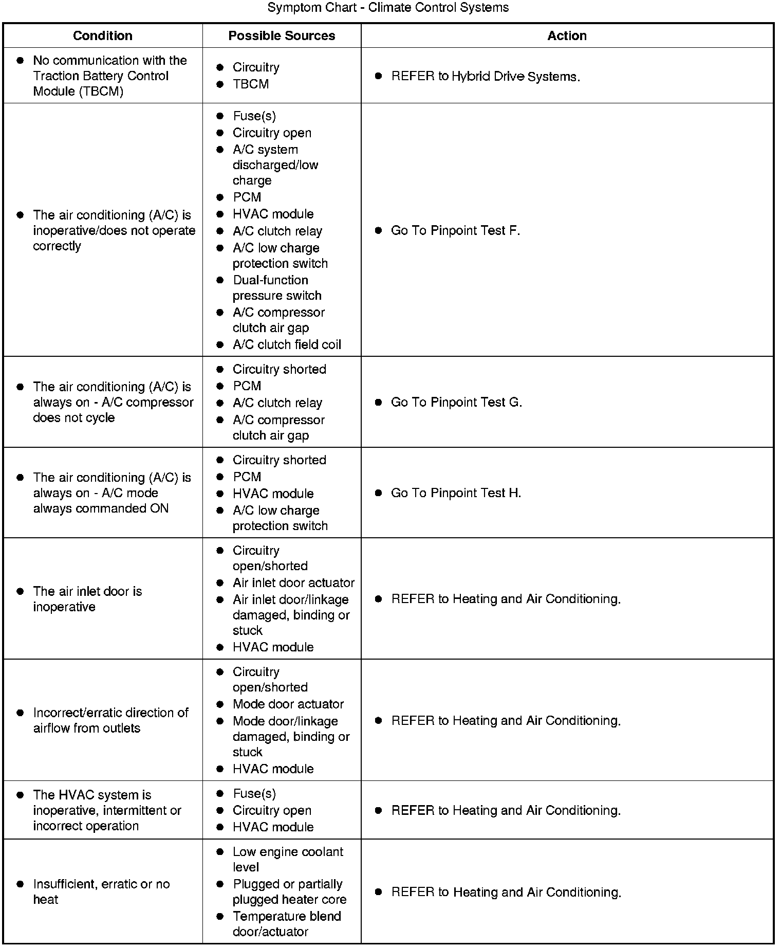 Symptom Chart - Climate Control Systems