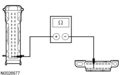 - Measure the resistance between the SJB C2280b-38, circuit VDB07 (VT/OG), harness side and the DLC C251-11, circuit VDB07 (VT/OG), harness side.