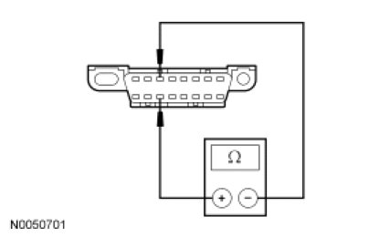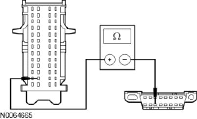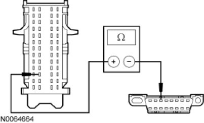 - Measure the resistance between the SJB C2280b-37, circuit VDB06 (GY/OG), harness side and the DLC C251-3, circuit VDB06 (GY/OG), harness side.