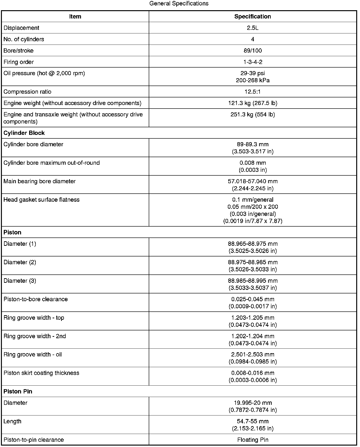 General Specifications