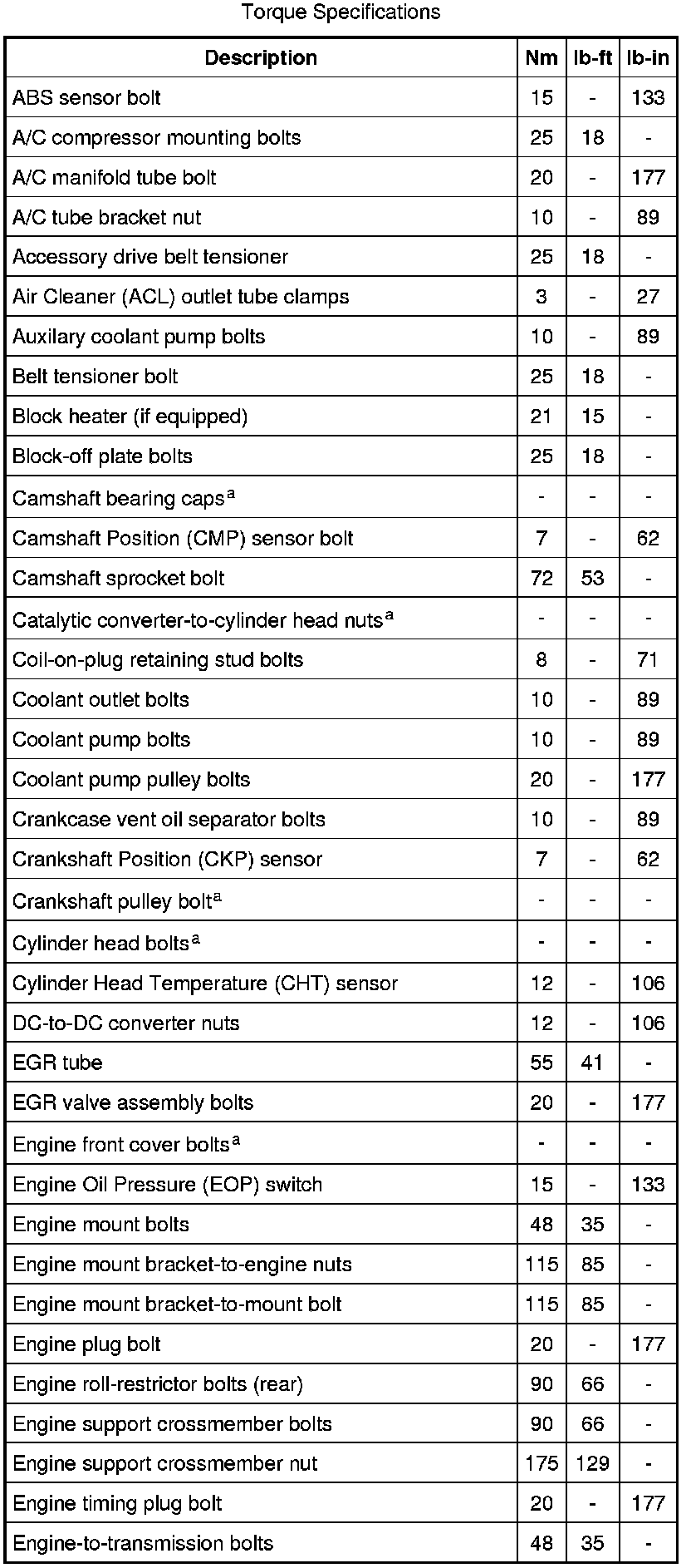 Torque Specifications
