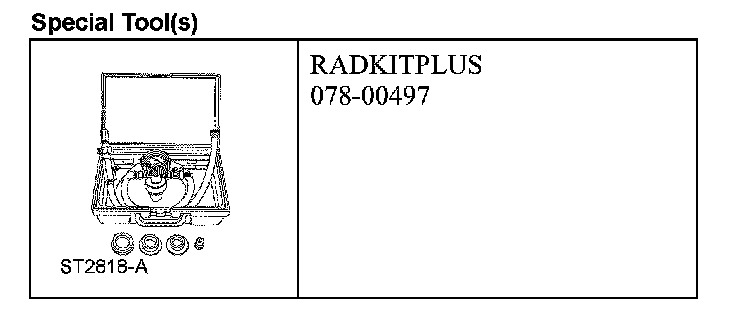 1. Using the special tool, install the RADKITPLUS and follow the manufacturer's instructions to fill and bleed the cooling system.