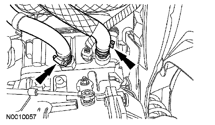5. Loosen the hose clamps at the transaxle, then pull the hoses off to allow the coolant to drain.