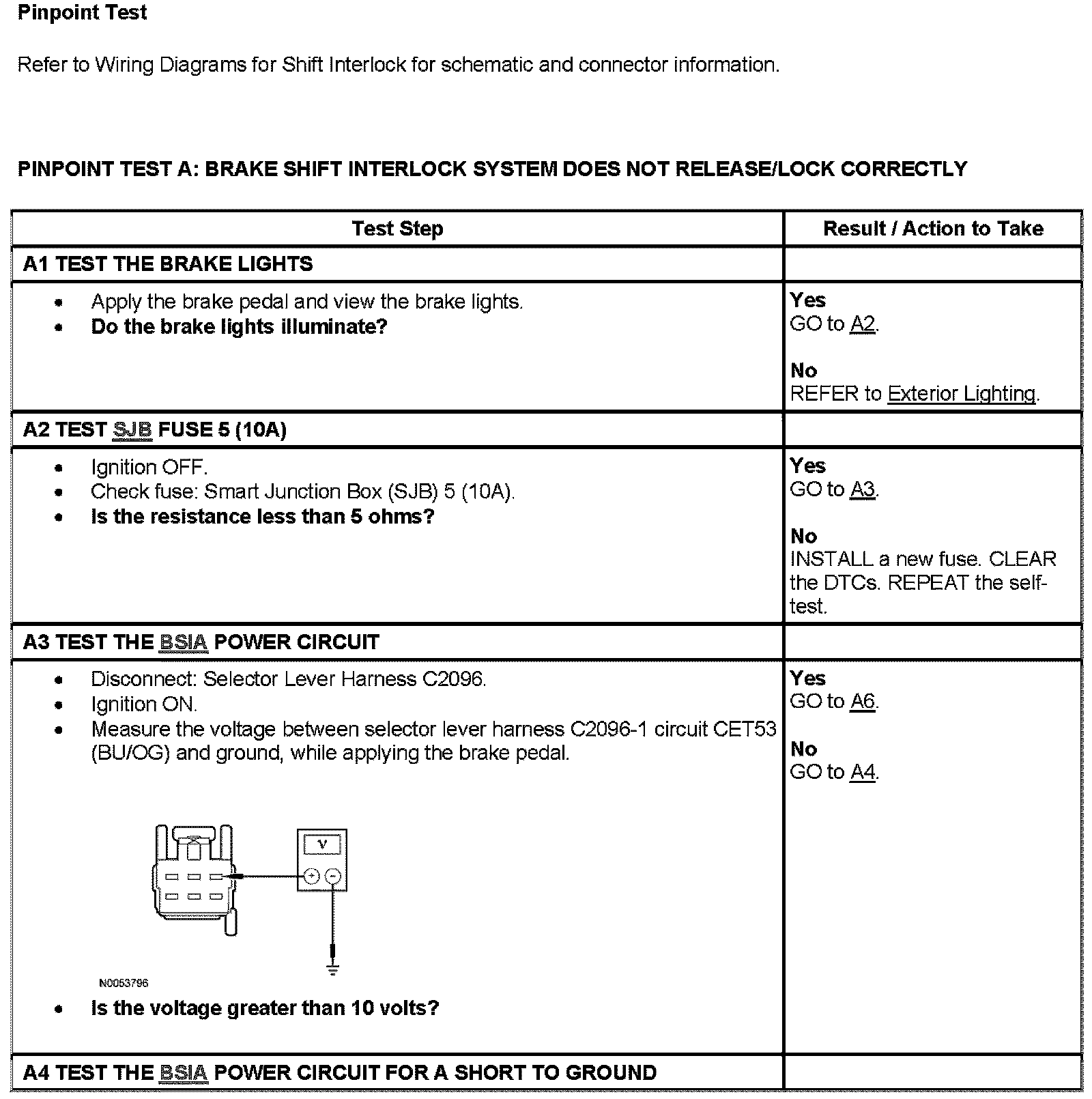 Pinpoint Test A: A1-A4: