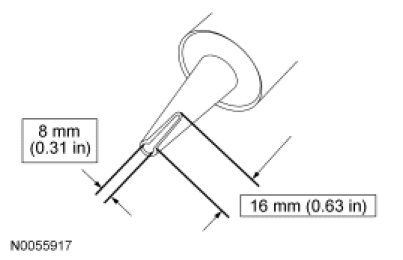 Using an appropriate tool, trim the urethane adhesive leaving a 1 mm to 2 mm (0.04 in to 0.08 in) base of original equipment urethane adhesive on the pinchweld.