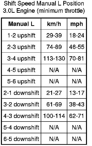 Shift Speed Manual L Position 3.0L Engine (minimum throttle):