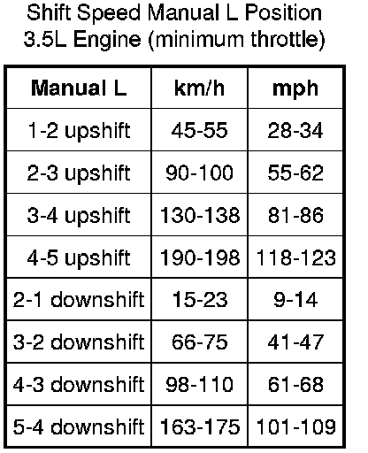Shift Speed Manual L Position 3.5L Engine (minimum throttle):