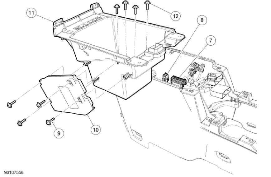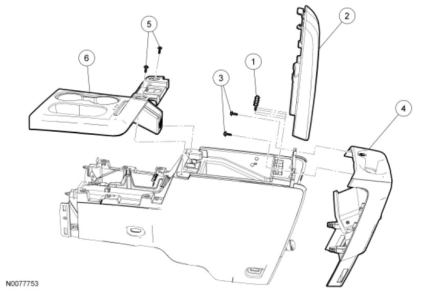 3. Remove the 2 screws and the front floor console rear trim panel.