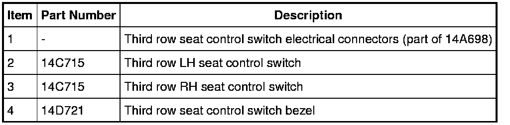 NOTE: The third row seat control switches are located in the LH quarter trim panel.