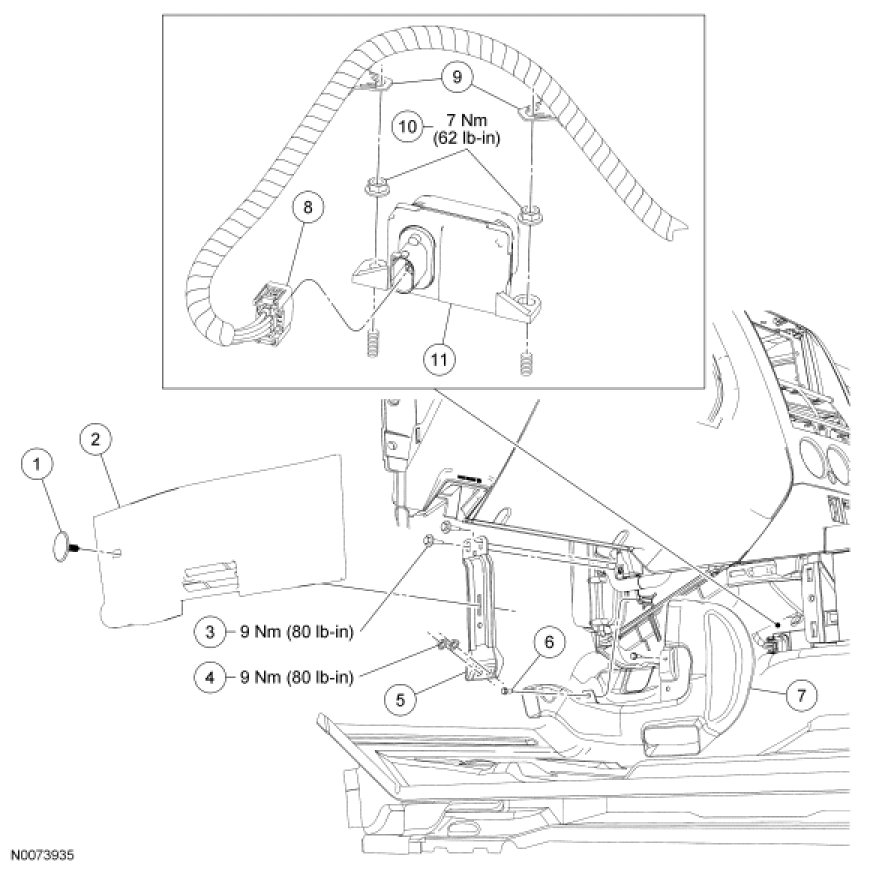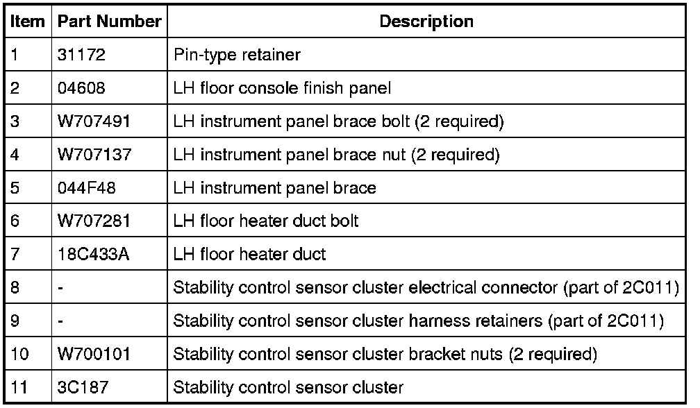 1. Remove the pin-type retainer and the LH floor console finish panel.