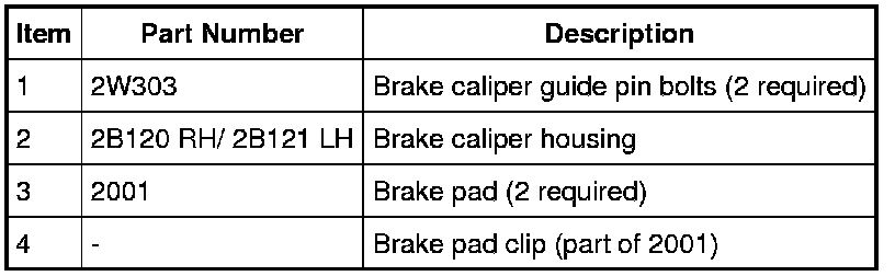 1. NOTE: One brake disc pad kit contains the pads and pad clips required for both sides.