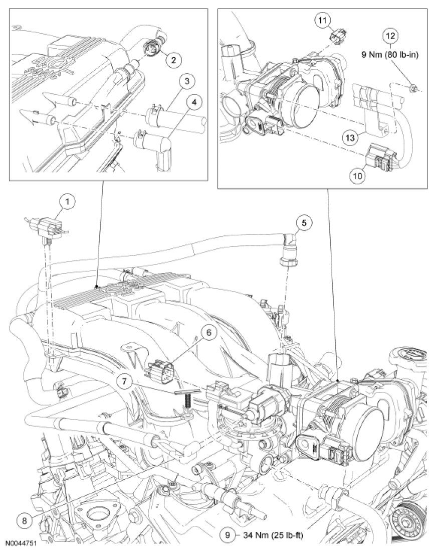 - To install, tighten to 34 Nm (25 lb-ft).