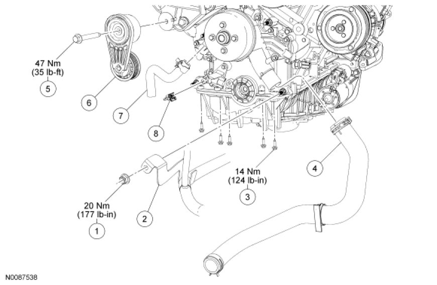 - Tighten to 47 Nm (35 lb-ft).