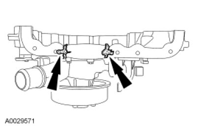 Position the thermostat housing and install the 3 bolts.