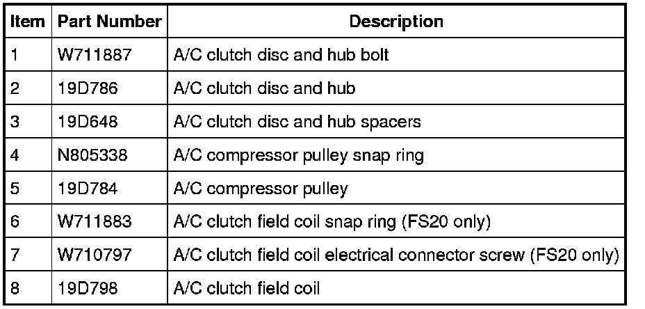 1. Remove the A/C compressor. For additional information, refer to Air Conditioning (A/C) Compressor - 4.0L SOHC Service and Repair or Air Conditioning (A/C) Compressor - 4.6L Service and Repair.