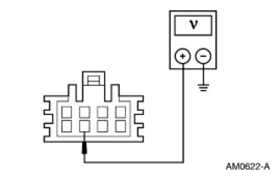 - Measure the voltage between ground and blend door actuator motor C2091-7, circuit CBP20 (YE/VT), harness side.